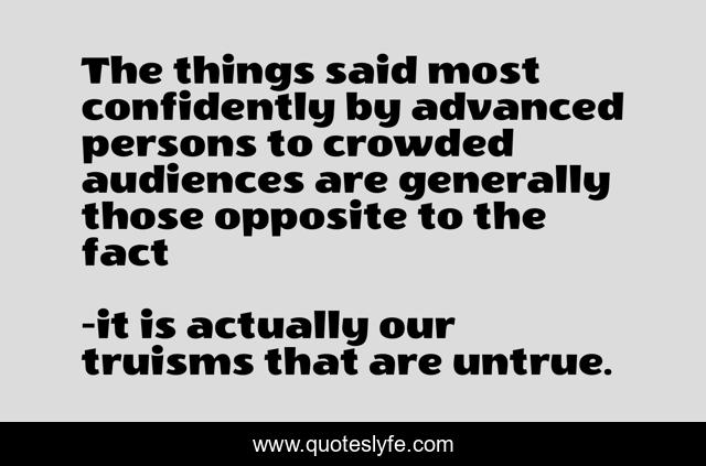 This page presents the quote "The things said most confidently by advanced persons to crowded audiences are generally those opposite to the fact". Author of this quote is it is actually our truisms that are untrue.. .