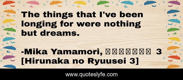 This page presents the quote "The things that I've been longing for were nothing but dreams.". Author of this quote is Mika Yamamori, ひるなかの流星 3 [Hirunaka no Ryuusei 3]. .