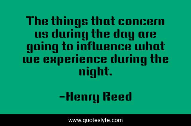 This page presents the quote "The things that concern us during the day are going to influence what we experience during the night.". Author of this quote is Henry Reed. This quote is about influence, day, night,.