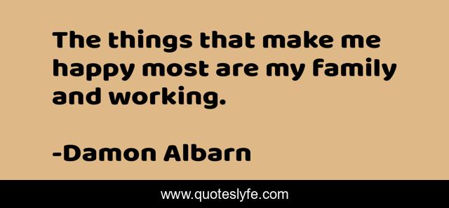 This page presents the quote "The things that make me happy most are my family and working.". Author of this quote is Damon Albarn. This quote is about me, working, happy,.