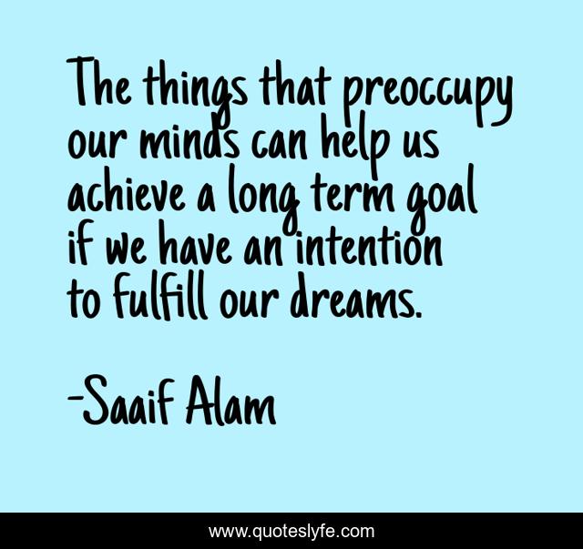 This page presents the quote "The things that preoccupy our minds can help us achieve a long term goal if we have an intention to fulfill our dreams.". Author of this quote is Saaif Alam. .