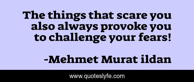 This page presents the quote "The things that scare you also always provoke you to challenge your fears!". Author of this quote is Mehmet Murat ildan. This quote is about mehmet-murat-ildan, turkish, challenge, turkish-writers, turkish-literature, fear,.