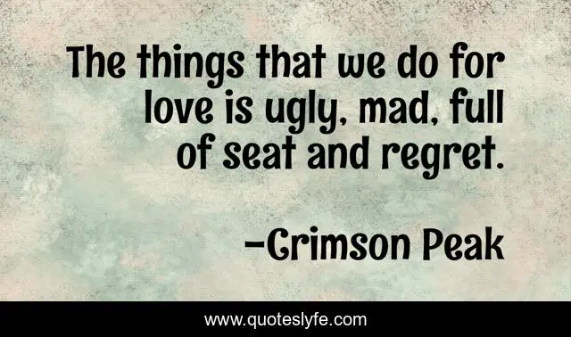 This page presents the quote "The things that we do for love is ugly, mad, full of seat and regret.". Author of this quote is Crimson Peak. This quote is about fantasy, horror, dramatic-story,.