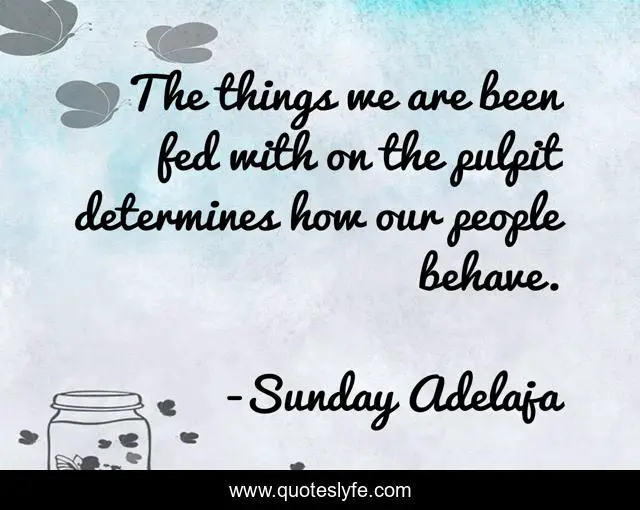 This page presents the quote "The things we are been fed with on the pulpit determines how our people behave.". Author of this quote is Sunday Adelaja. This quote is about behaviour, pulpit, people,.