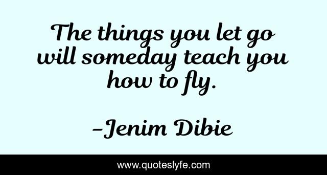 This page presents the quote "The things you let go will someday teach you how to fly.". Author of this quote is Jenim Dibie. This quote is about loss, flying, love, lost-love, lost, scars, poetry, wounds, growth,.