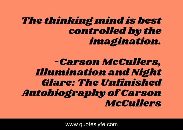 This page presents the quote "The thinking mind is best controlled by the imagination.". Author of this quote is Carson McCullers, Illumination and Night Glare: The Unfinished Autobiography of Carson McCullers. .