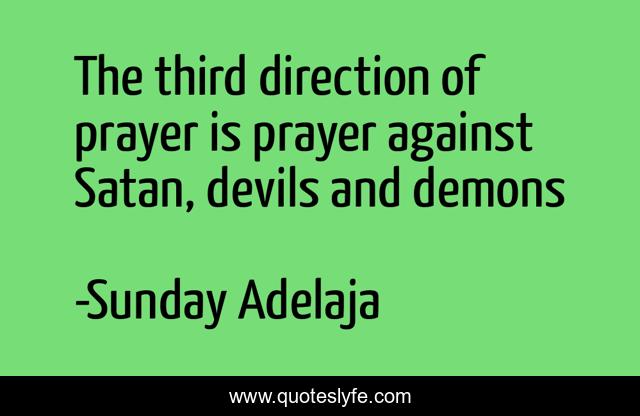 This page presents the quote "The third direction of prayer is prayer against Satan, devils and demons". Author of this quote is Sunday Adelaja. .