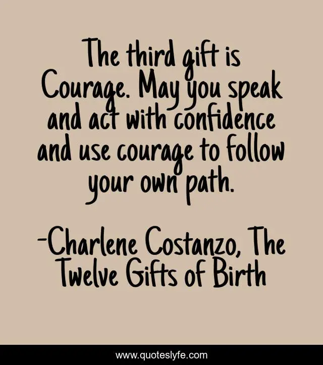 "Charlene Costanzo, The Twelve Gifts of Birth Quotes." Quoteslyfe.com, 2025. Sun. 07 Dec. 2025. <https://www.quoteslyfe.com/quote/The-third-gift-is-Courage-May-you-144446>.