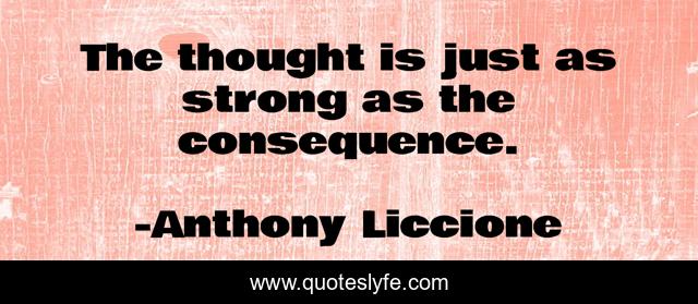 This page presents the quote "The thought is just as strong as the consequence.". Author of this quote is Anthony Liccione. This quote is about consequence, thought, strength, deliverance, strong,.