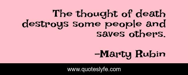 This page presents the quote "The thought of death destroys some people and saves others.". Author of this quote is Marty Rubin. This quote is about salvation, death, the-thought-of-death, destruction,.