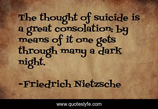 "Friedrich Nietzsche Quotes." Quoteslyfe.com, 2025. Sun. 07 Dec. 2025. <https://www.quoteslyfe.com/quote/The-thought-of-suicide-is-a-great-144503>.