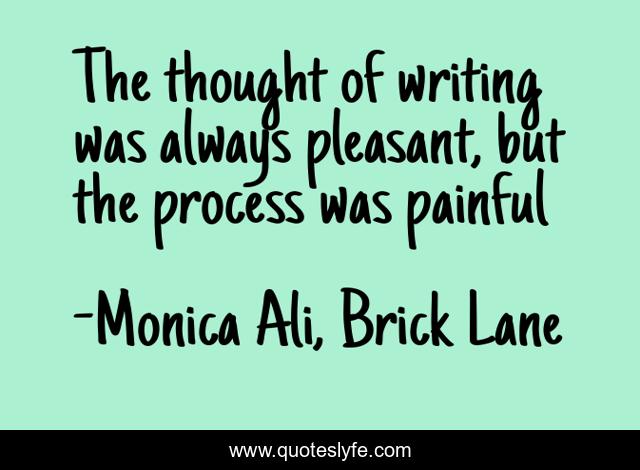 This page presents the quote "The thought of writing was always pleasant, but the process was painful". Author of this quote is Monica Ali, Brick Lane. This quote is about relationships, pain, emotions, reality, family-contact, writing,.