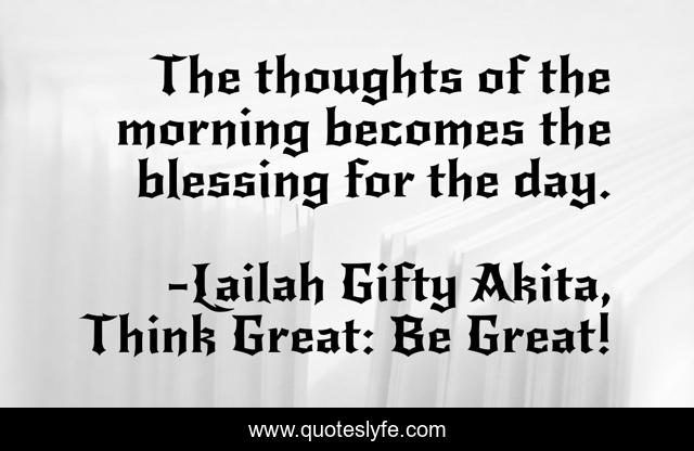 "Lailah Gifty Akita, Think Great: Be Great! Quotes." Quoteslyfe.com, 2025. Sat. 06 Dec. 2025. <https://www.quoteslyfe.com/quote/The-thoughts-of-the-morning-becomes-the-188355>.