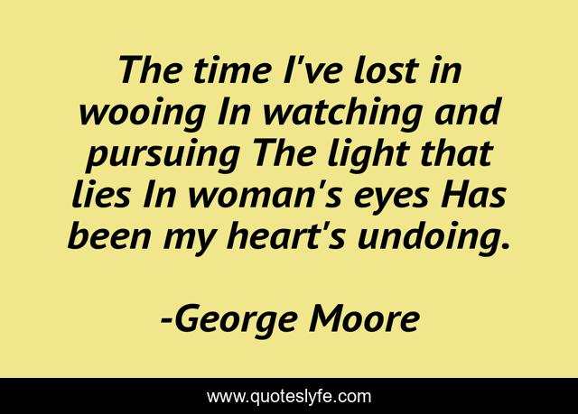 This page presents the quote "The time I've lost in wooing In watching and pursuing The light that lies In woman's eyes Has been my heart's undoing.". Author of this quote is George Moore. .