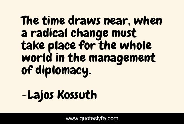 This page presents the quote "The time draws near, when a radical change must take place for the whole world in the management of diplomacy.". Author of this quote is Lajos Kossuth. This quote is about world, management, time,.