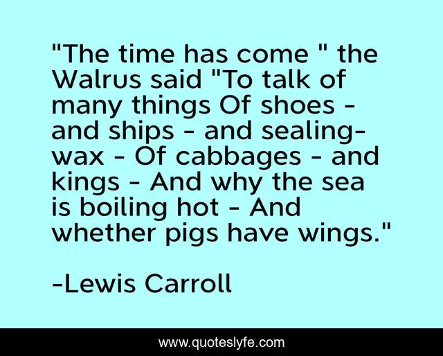 This page presents the quote ""The time has come " the Walrus said "To talk of many things Of shoes - and ships - and sealing-wax - Of cabbages - and kings - And why the sea is boiling hot - And whether pigs have wings."". Author of this quote is Lewis Carroll. .