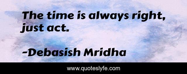 This page presents the quote "The time is always right, just act.". Author of this quote is Debasish Mridha. This quote is about life, love, knowledge, inspirational, intelligence, philosophy, wisdom, quotes, affection,.
