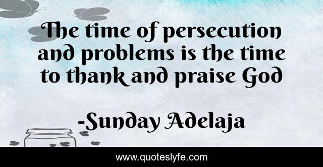 This page presents the quote "The time of persecution and problems is the time to thank and praise God". Author of this quote is Sunday Adelaja. This quote is about c, thank, praise, time, persecution, problem,.