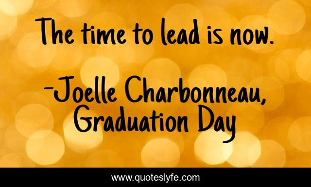 "Joelle Charbonneau, Graduation Day Quotes." Quoteslyfe.com, 2025. Mon. 08 Dec. 2025. <https://www.quoteslyfe.com/quote/The-time-to-lead-is-now-188225>.