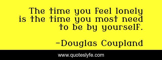 This page presents the quote "The time you feel lonely is the time you most need to be by yourself.". Author of this quote is Douglas Coupland. This quote is about alone, lonely, yourself,.