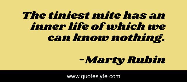 This page presents the quote "The tiniest mite has an inner life of which we can know nothing.". Author of this quote is Marty Rubin. This quote is about mystery, the-unknowable, knowledge, nature,.