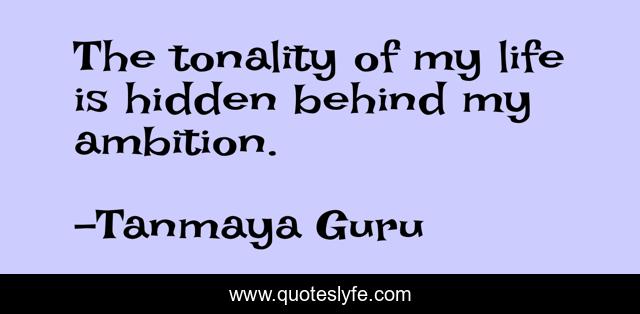 This page presents the quote "The tonality of my life is hidden behind my ambition.". Author of this quote is Tanmaya Guru. .