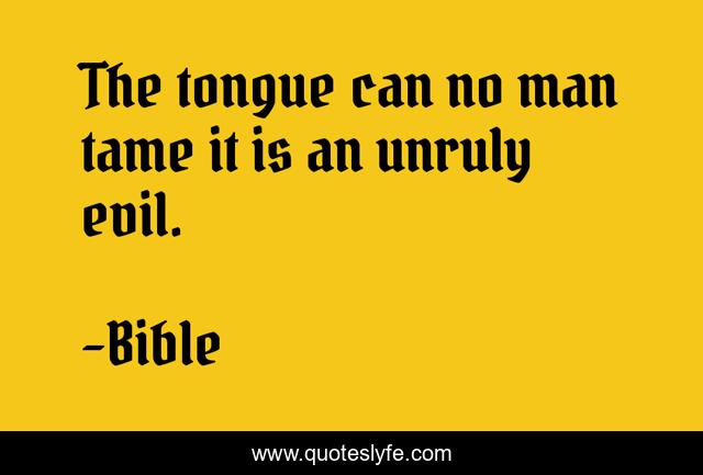 This page presents the quote "The tongue can no man tame it is an unruly evil.". Author of this quote is Bible. .