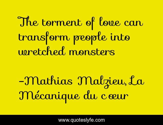 This page presents the quote "The torment of love can transform people into wretched monsters". Author of this quote is Mathias Malzieu, La Mécanique du cœur. This quote is about love, transform, wretch, torment, monsters, affection,.
