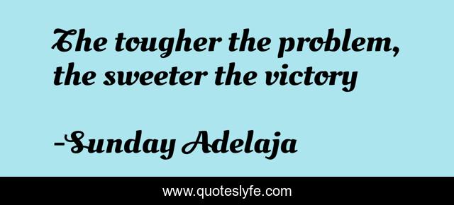 This page presents the quote "The tougher the problem, the sweeter the victory". Author of this quote is Sunday Adelaja. This quote is about problem, victory, sweeter, tougher,.