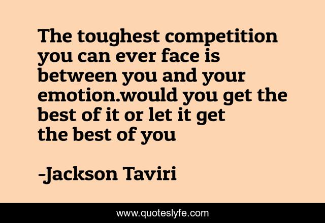 This page presents the quote "The toughest competition you can ever face is between you and your emotion.would you get the best of it or let it get the best of you". Author of this quote is Jackson Taviri. .