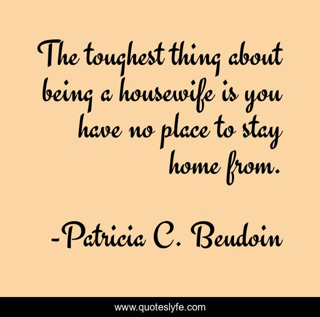 "Patricia C. Beudoin Quotes." Quoteslyfe.com, 2025. Mon. 08 Dec. 2025. <https://www.quoteslyfe.com/quote/The-toughest-thing-about-being-a-housewife-278814>.