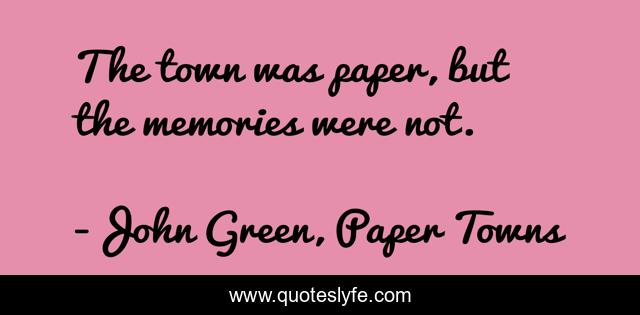 "John Green, Paper Towns Quotes." Quoteslyfe.com, 2025. Mon. 08 Dec. 2025. <https://www.quoteslyfe.com/quote/The-town-was-paper-but-the-memories-164258>.