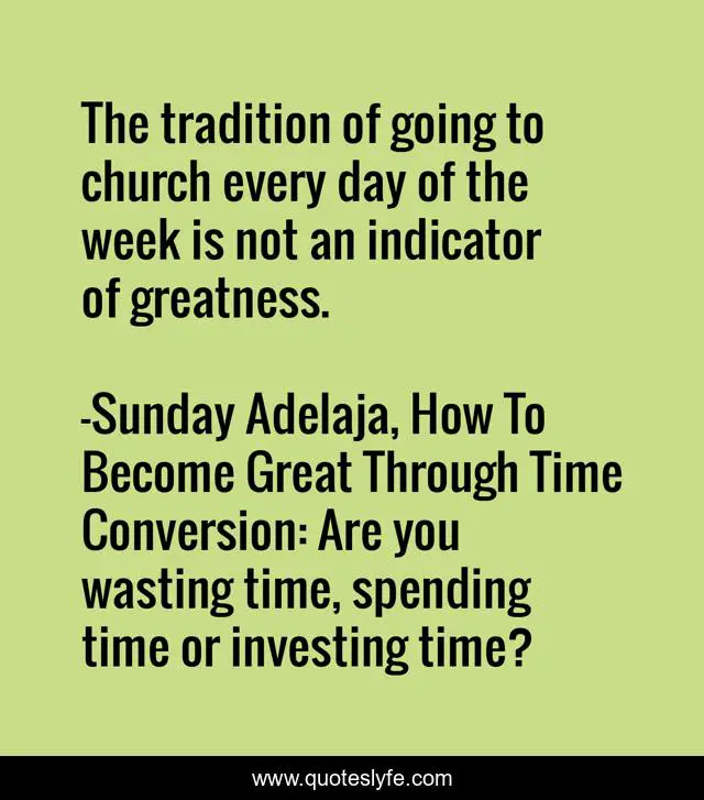 "Sunday Adelaja, How To Become Great Through Time Conversion: Are you wasting time, spending time or investing time? Quotes." Quoteslyfe.com, 2025. Mon. 08 Dec. 2025. <https://www.quoteslyfe.com/quote/The-tradition-of-going-to-church-every-39285>.