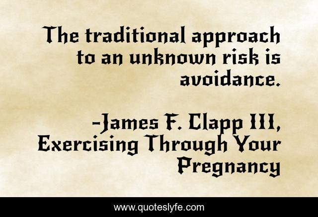 "James F. Clapp III, Exercising Through Your Pregnancy Quotes." Quoteslyfe.com, 2025. Fri. 05 Dec. 2025. <https://www.quoteslyfe.com/quote/The-traditional-approach-to-an-unknown-risk-254685>.