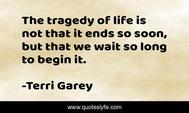 This page presents the quote "The tragedy of life is not that it ends so soon, but that we wait so long to begin it.". Author of this quote is Terri Garey. This quote is about life, tragedy,.