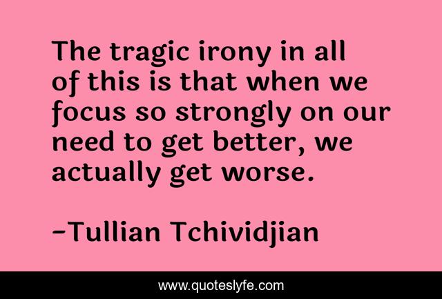 This page presents the quote "The tragic irony in all of this is that when we focus so strongly on our need to get better, we actually get worse.". Author of this quote is Tullian Tchividjian. .