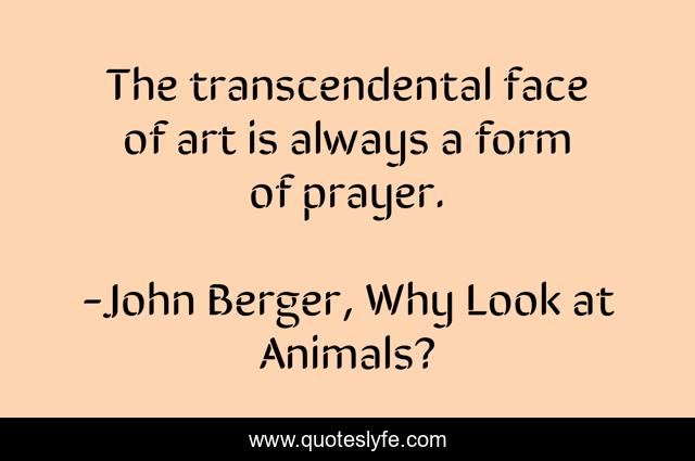 This page presents the quote "The transcendental face of art is always a form of prayer.". Author of this quote is John Berger, Why Look at Animals?. This quote is about art, the-white-bird, prayer,.