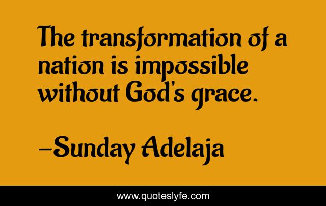 This page presents the quote "The transformation of a nation is impossible without God's grace.". Author of this quote is Sunday Adelaja. This quote is about transformation, god-s-grace, nation,.