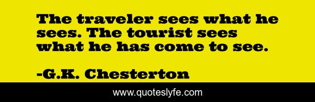 "G.K. Chesterton Quotes." Quoteslyfe.com, 2025. Sat. 06 Dec. 2025. <https://www.quoteslyfe.com/quote/The-traveler-sees-what-he-sees-The-136821>.