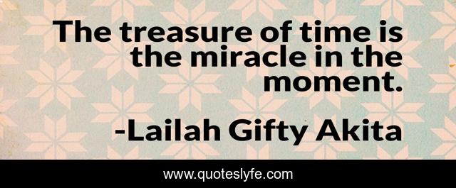 This page presents the quote "The treasure of time is the miracle in the moment.". Author of this quote is Lailah Gifty Akita. This quote is about moments, treasure, lailah-gifty-akita-affirmations, miracle, time,.