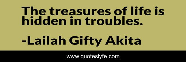 This page presents the quote "The treasures of life is hidden in troubles.". Author of this quote is Lailah Gifty Akita. This quote is about life, positive, treasure, troubles, confidence, difficult-times, inspirational, wise-sayings, enthusiasm,.