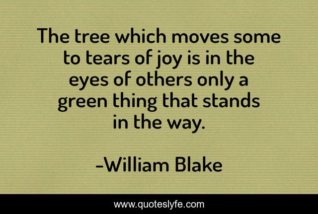 This page presents the quote "The tree which moves some to tears of joy is in the eyes of others only a green thing that stands in the way.". Author of this quote is William Blake. .