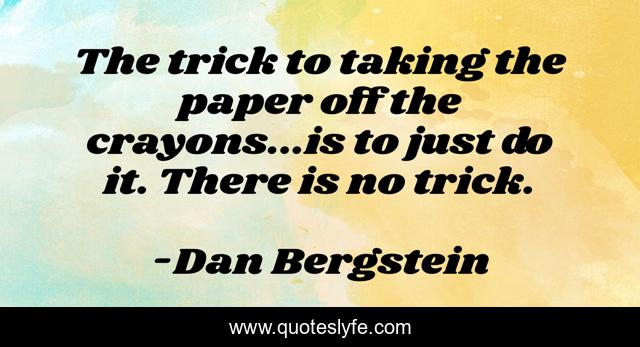 This page presents the quote "The trick to taking the paper off the crayons...is to just do it. There is no trick.". Author of this quote is Dan Bergstein. .