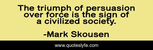 This page presents the quote "The triumph of persuasion over force is the sign of a civilized society.". Author of this quote is Mark Skousen. This quote is about society, civilization, peace, war,.
