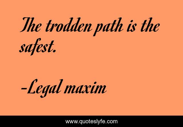 "Legal maxim Quotes." Quoteslyfe.com, 2025. Fri. 05 Dec. 2025. <https://www.quoteslyfe.com/quote/The-trodden-path-is-the-safest-275397>.
