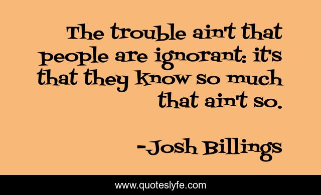 This page presents the quote "The trouble ain't that people are ignorant: it's that they know so much that ain't so.". Author of this quote is Josh Billings. .