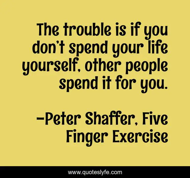 This page presents the quote "The trouble is if you don’t spend your life yourself, other people spend it for you.". Author of this quote is Peter Shaffer, Five Finger Exercise. This quote is about life, life-lessons,.