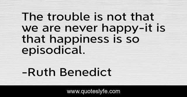 This page presents the quote "The trouble is not that we are never happy-it is that happiness is so episodical.". Author of this quote is Ruth Benedict. .