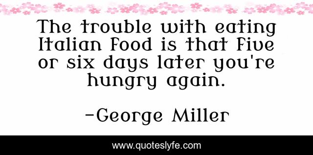 "George Miller Quotes." Quoteslyfe.com, 2025. Sun. 07 Dec. 2025. <https://www.quoteslyfe.com/quote/The-trouble-with-eating-Italian-food-is-277369>.