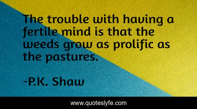 This page presents the quote "The trouble with having a fertile mind is that the weeds grow as prolific as the pastures.". Author of this quote is P.K. Shaw. .